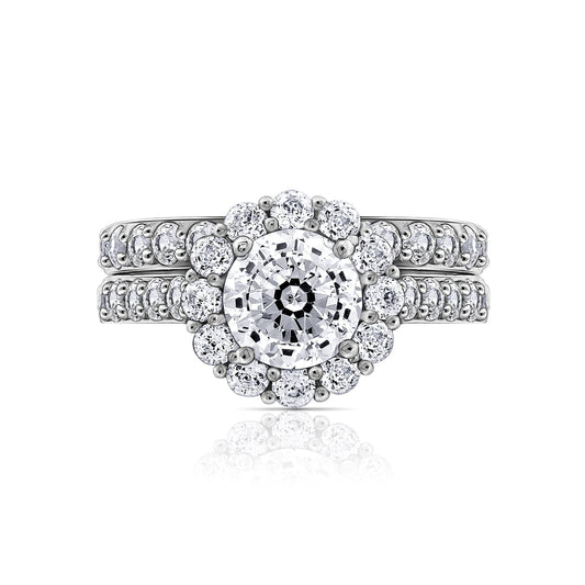 Floral Round Halo Ring Set