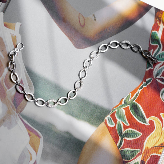 Alternating Pave-Linked Chain Bracelet JEB14165 JEB14165
